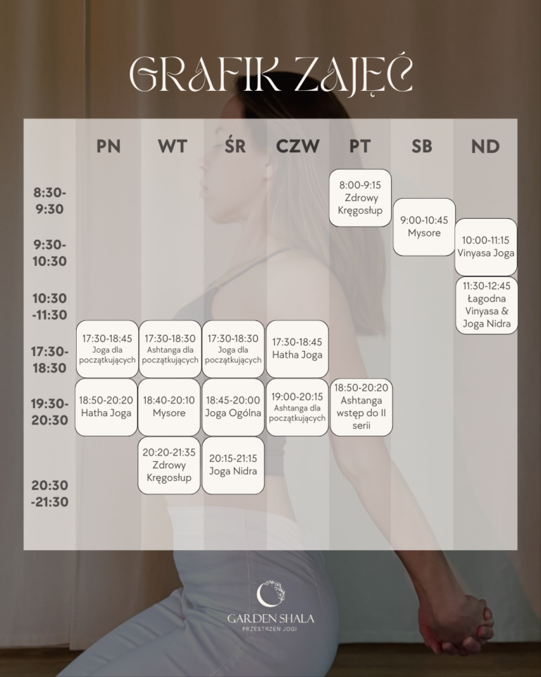 Statyczna praktyka pozycji jogi z elementami technik oddechowych i medytacji. Prowadząca: Ola